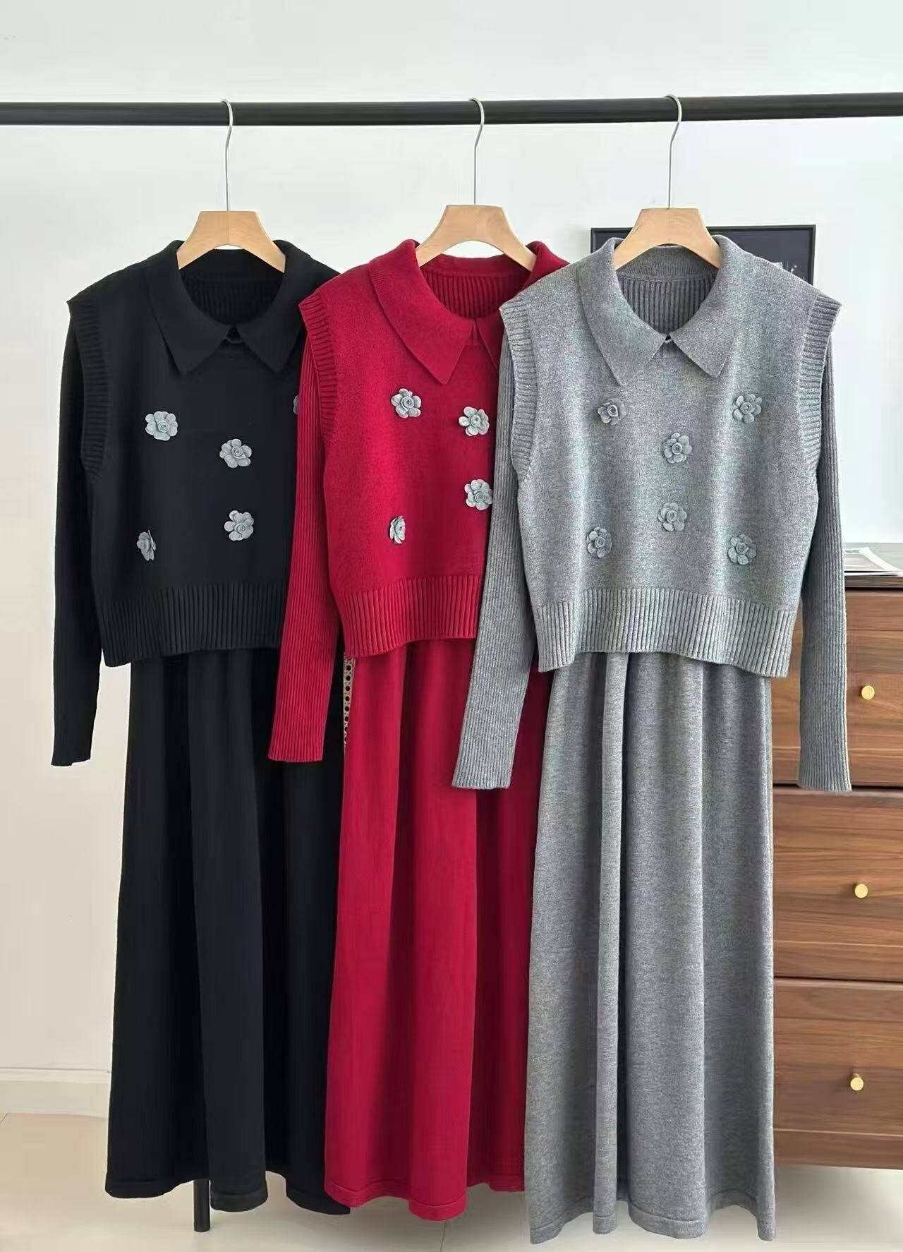 【おしゃれニットワンピースベストアンサンブル】