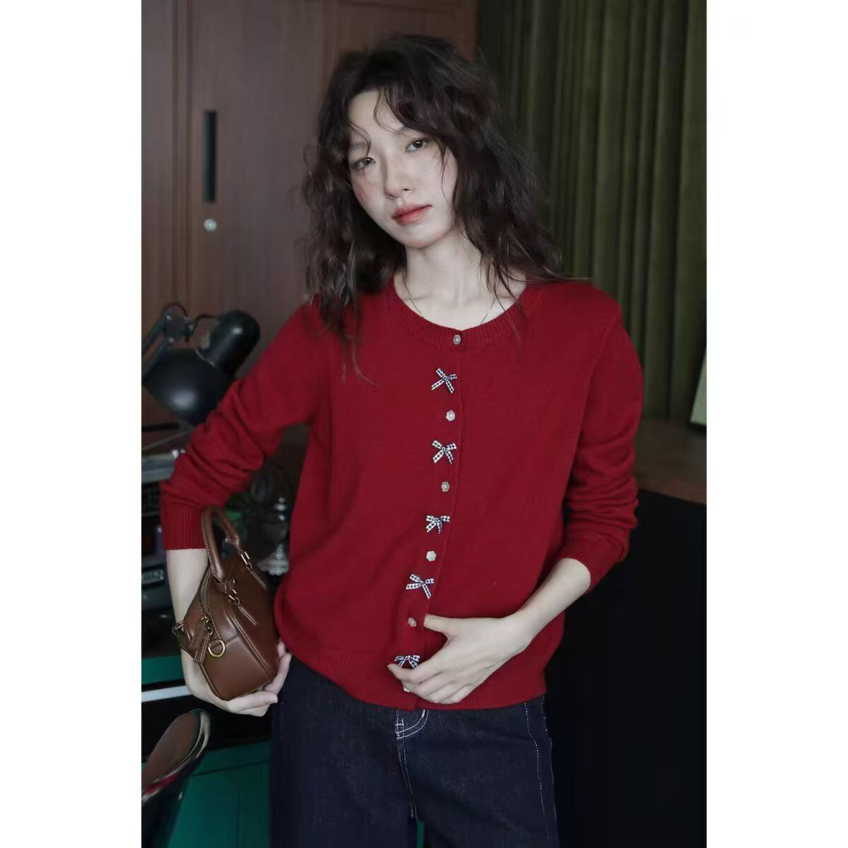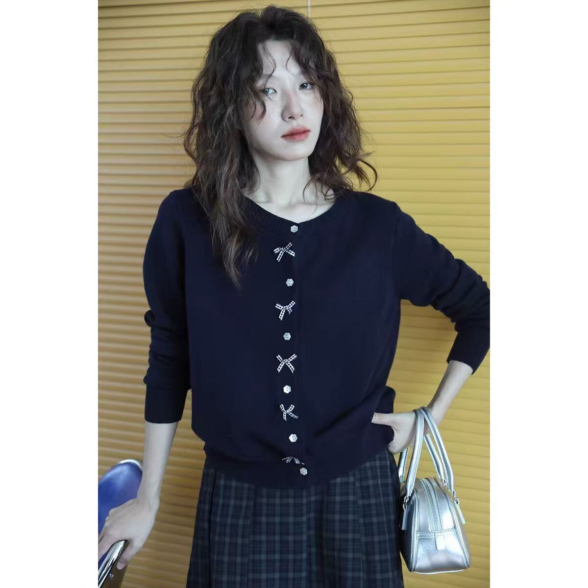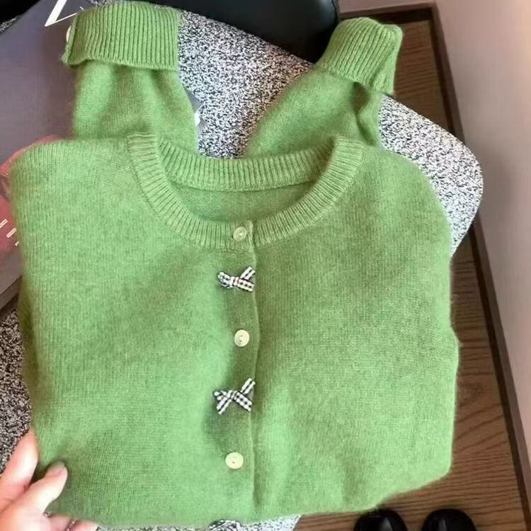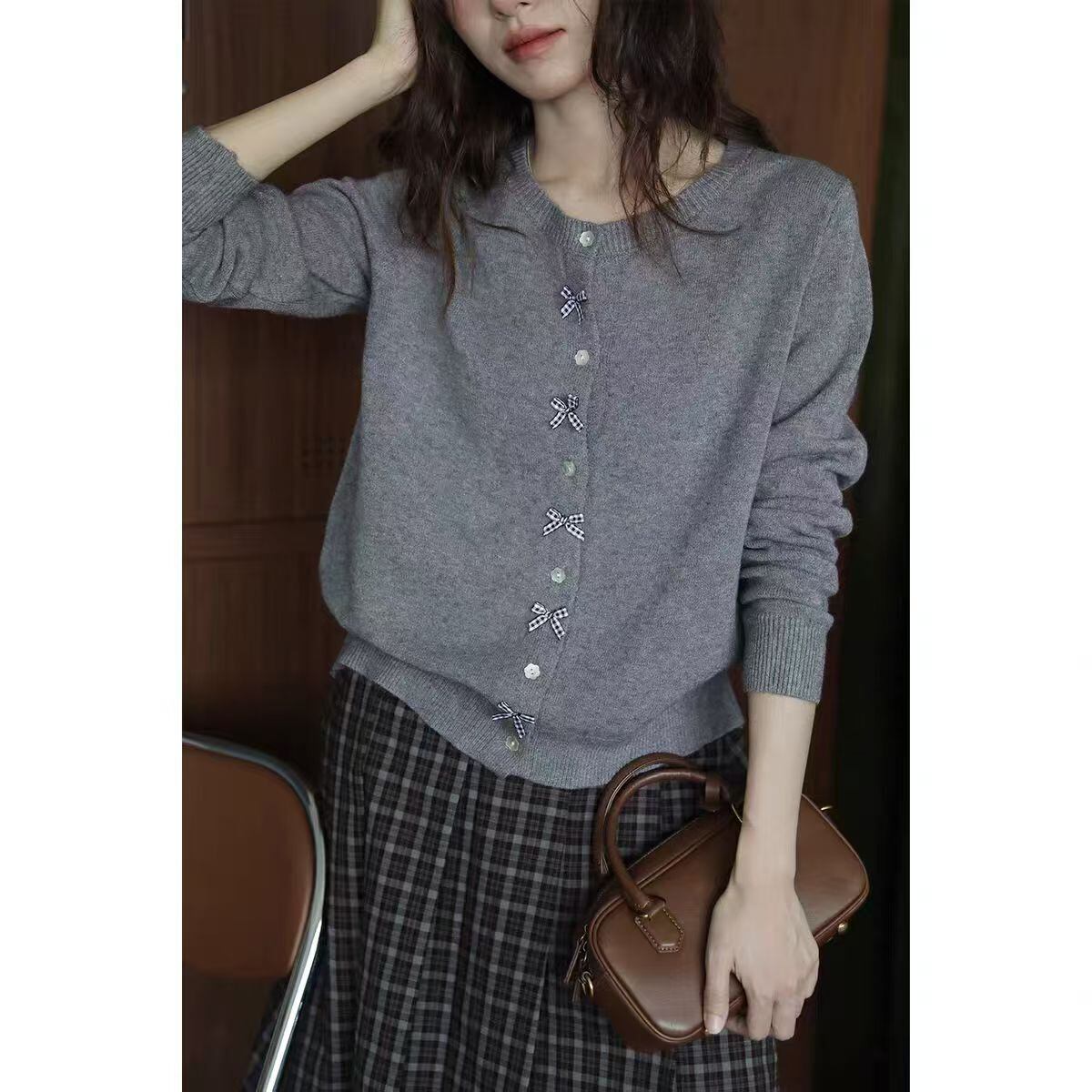 【かわいいニットリボンカーデ、これからの季節にぴったり】