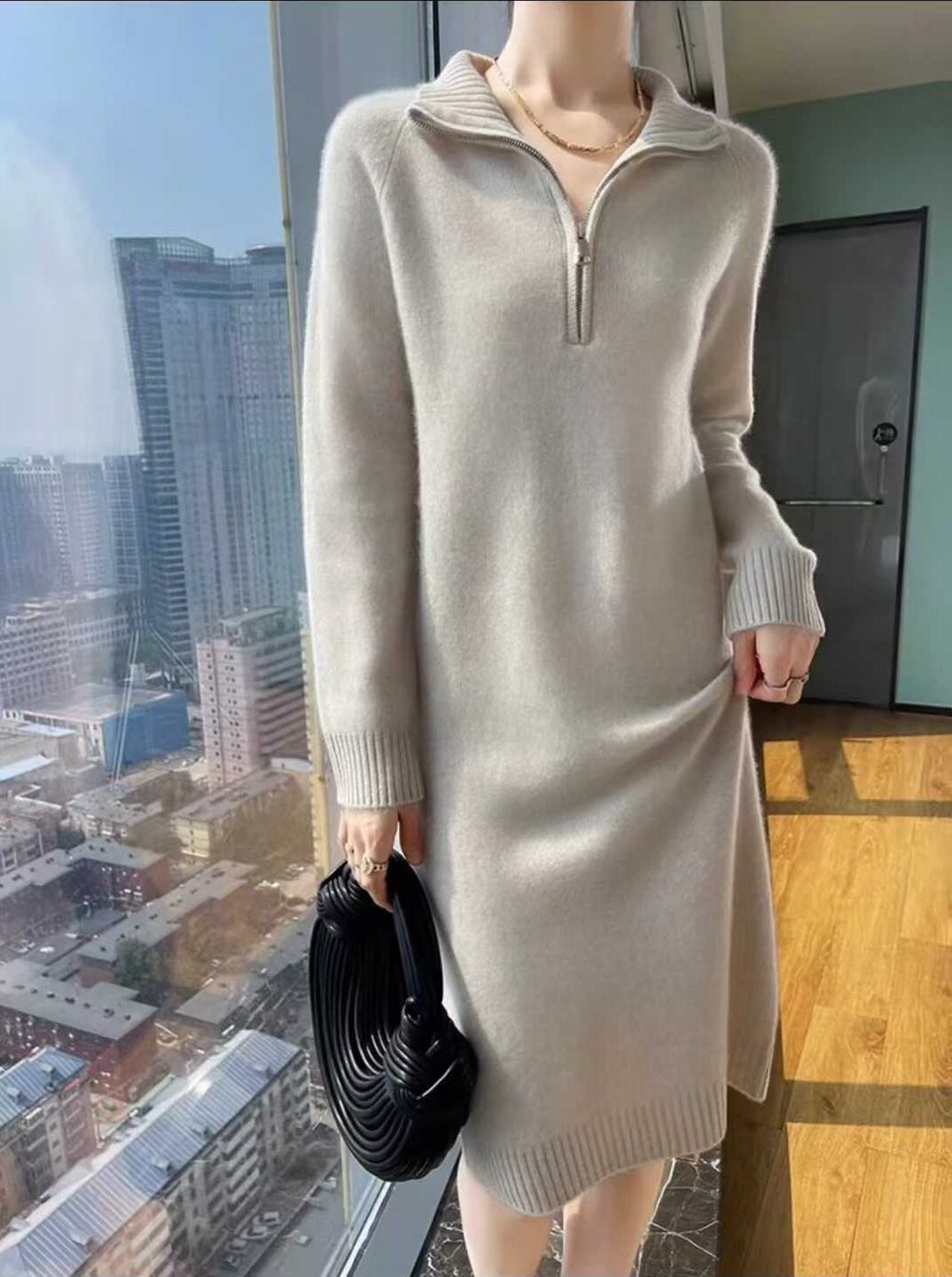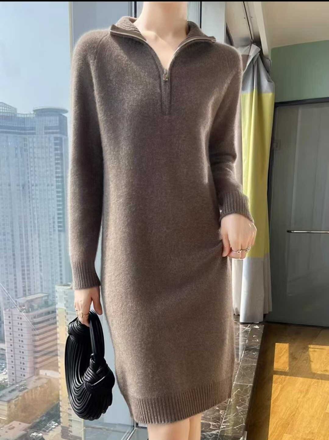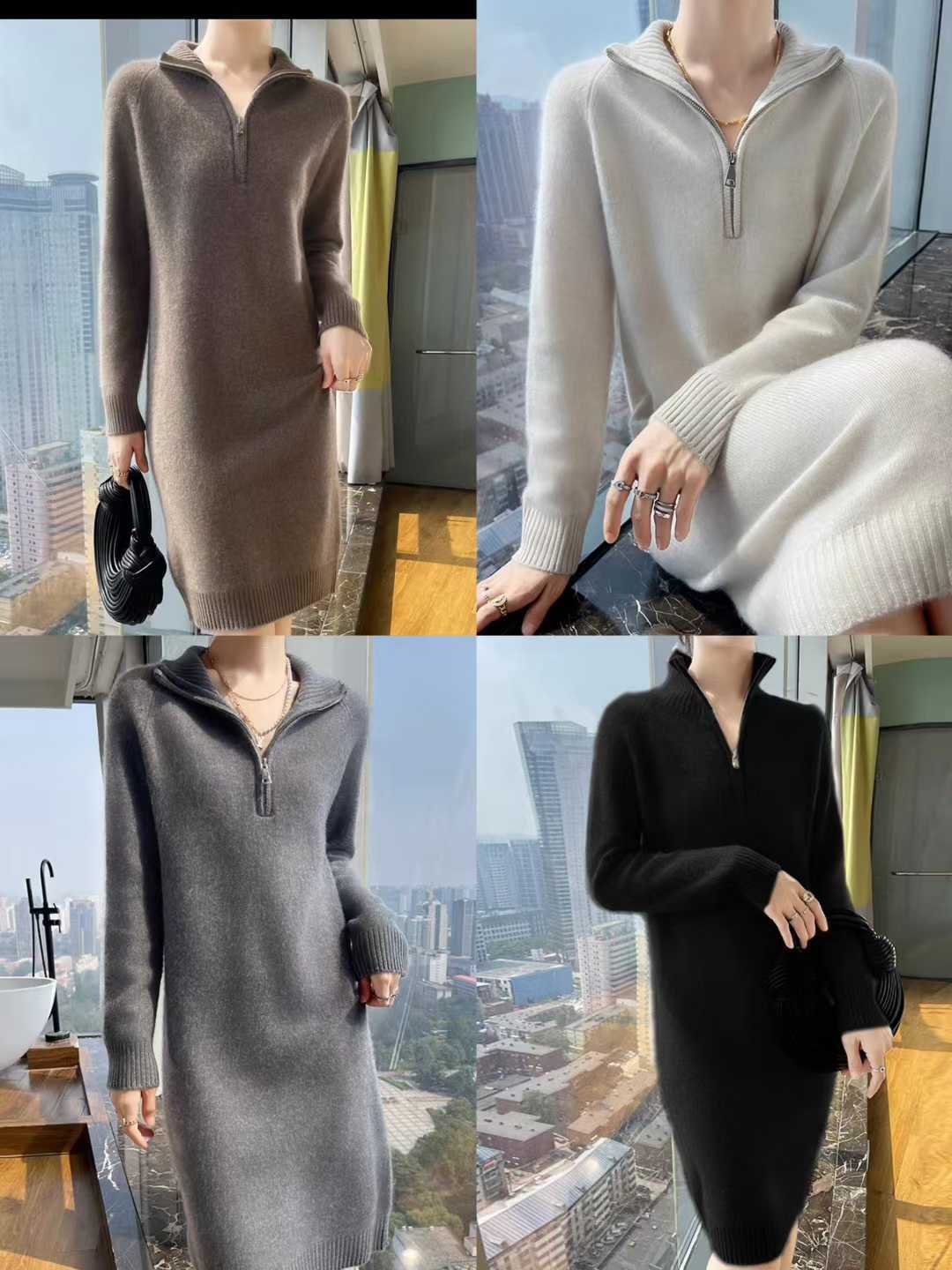 シンプルなファスナーニットワンピース、とってもおしゃれ。