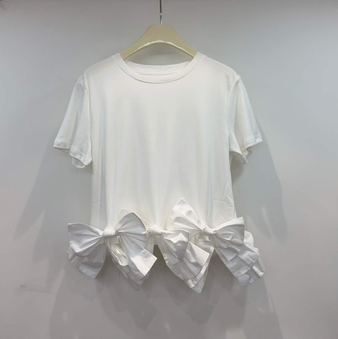 【かわいい】大人かわいい裾リボンデザインTシャツ